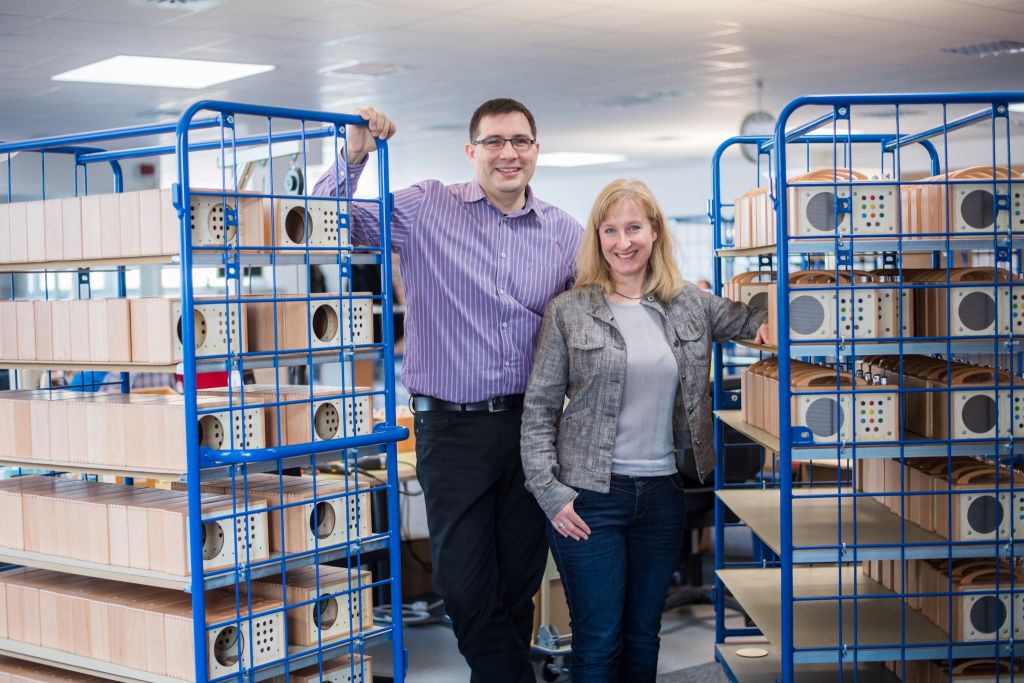 Das junge Unternehmen baut die Gehäuse aus Holz und Edelstahl, montiert ausschließlich in Frickenhausen und baut das Gerät robust und einfach. Dass Winzki damit den Nerv von Kindern und deren Eltern trifft, beweist die steigende Nachfrage. Leiterinnen von Kindergärten sind auf den Hörbert aufmerksam geworden und fragen immer häufiger eine Werksbesichtigung an. Dabei soll den Kindern ein Gespür für Nachhaltigkeit vermittelt und gezeigt werden, wo und wie ihr tragbarer Hörspieler gebaut wird. Deshalb waren die bisherigen 650 Quadratmeter für Versand, Produktion und Lager schlicht zu knapp geworden. „Sogar unsere Bürokräfte waren von unseren MP3-Boxen und Kartons umgeben“, erzählt Rainer Brang, Geschäftsführer und Erfinder von Hörbert. Die Frickenhäuser mit den bunten Knöpfen hatten Glück: Im gleichen Areal war eine Halle frei, die das Team noch vor dem Weihnachtsgeschäft beziehen konnte. Nun stehen ganze 1500 Quadratmeter zur Verfügung. Brang: „Wir haben mittlerweile auch zwei neue Produkte, da kommt uns der Platz gerade recht.“ So hat der frühere Softwareentwickler nun auch einen Hörbert-Elektronikbausatz, sowie ein Nähset für eine Filzhülle in vier Farben und einen nachrüstbaren Sleeptimer im Angebot. Jetzt können Kinder mit ihrem Lieblingshörspiel einschlafen, und die Eltern festlegen, wie lange Hörbert noch spielt. Auch das Team der Mitarbeiter ist dieses Jahr bereits um vier auf 17 gewachsen. Denn Filz, Verpackungen oder Module müssen organisiert, montiert und gelagert werden. Im nächsten Jahr wird die Suche nach weiteren Mitarbeitern fortgesetzt, die Lust auf Qualität und kreatives Arbeitsumfeld haben. Mit einer Fachkraft für Marketing wird begonnen.