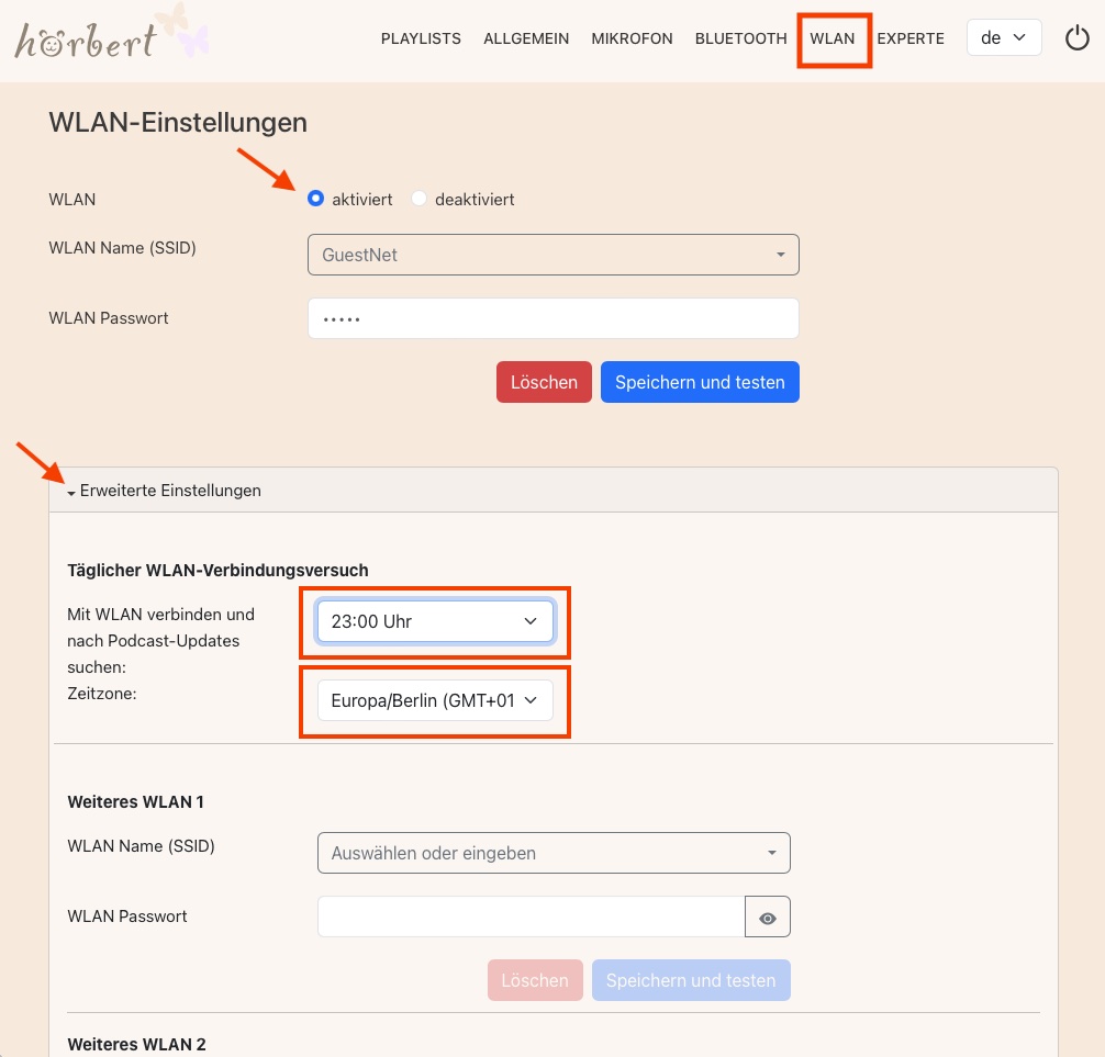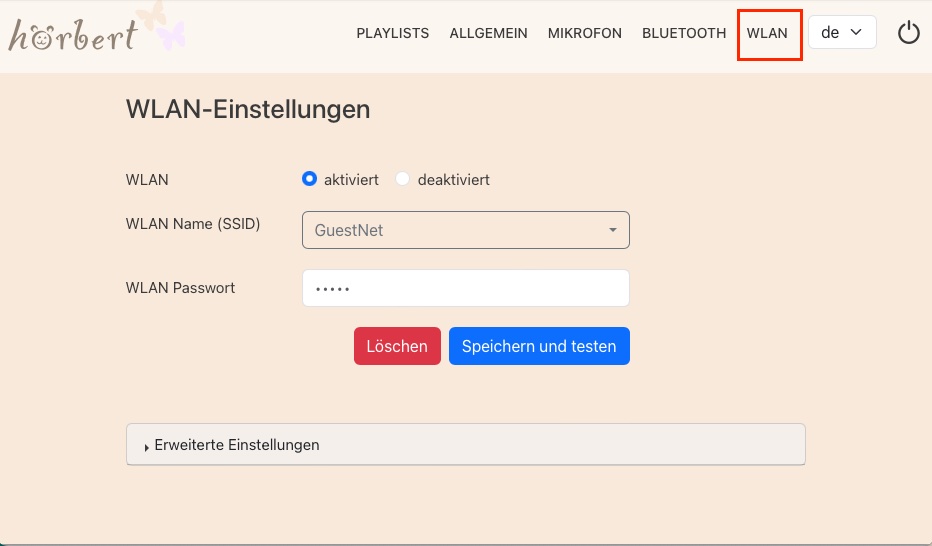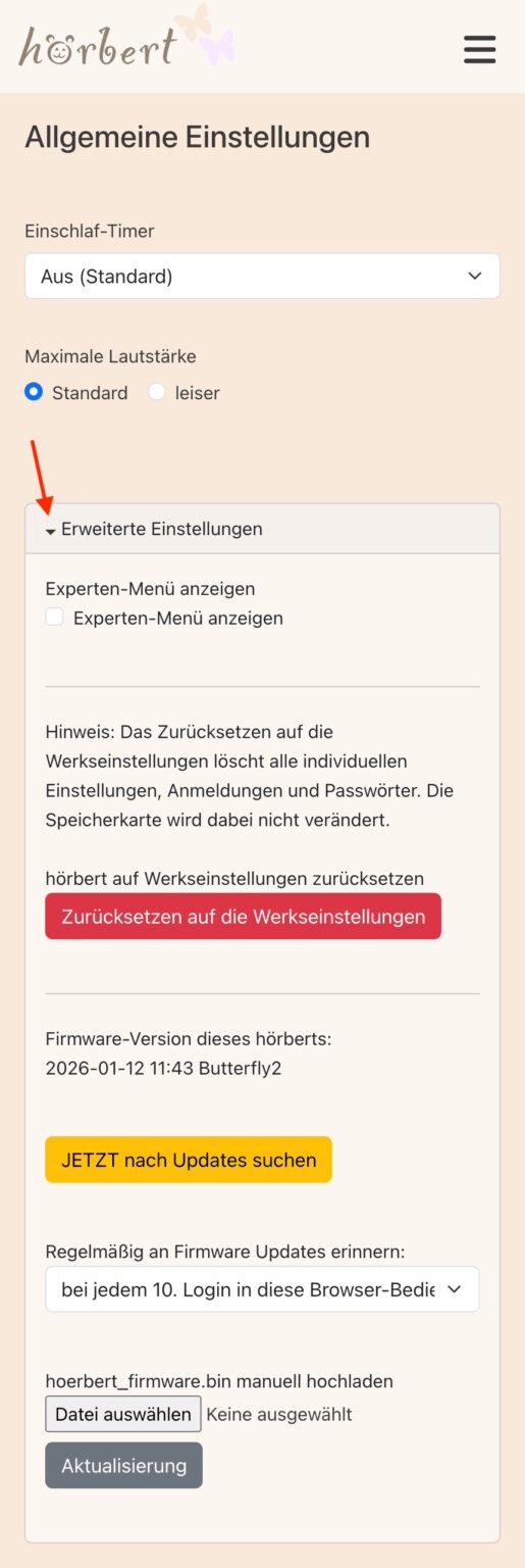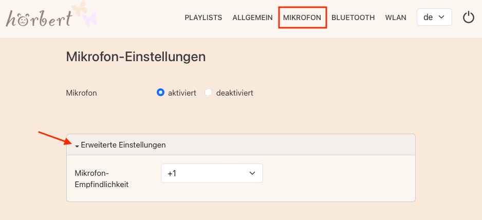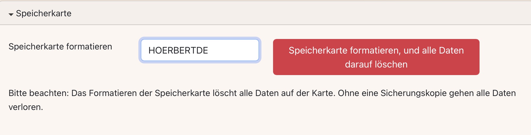 Zusätzlich besitzt hörbert viele erweiterte Funktionen, die über eine Weboberfläche, den Browser Set Mode (9.1), aktiviert werden können. Er lässt sich unter anderem als Bluetooth-Lautsprecher (9.6.4), Podcast-Player (9.4) oder Webradio-Player (9.3.7) nutzen. Dank der Aufnahmefunktionen (8) für Sprache, Bluetooth- und Internetradio-Streams, entstehen keine Folgekosten für neue Hörinhalte. Mit der Einschlaffunktion (9.2.1) begleitet hörbert sanft in den Schlaf. hörbert wird mit einer vorbespielten Speicherkarte ausgeliefert, sodass der Hörspaß sofort beginnen kann. Die Speicherkarte kann mit eigenen Inhalten (5.6) jederzeit ergänzt werden.